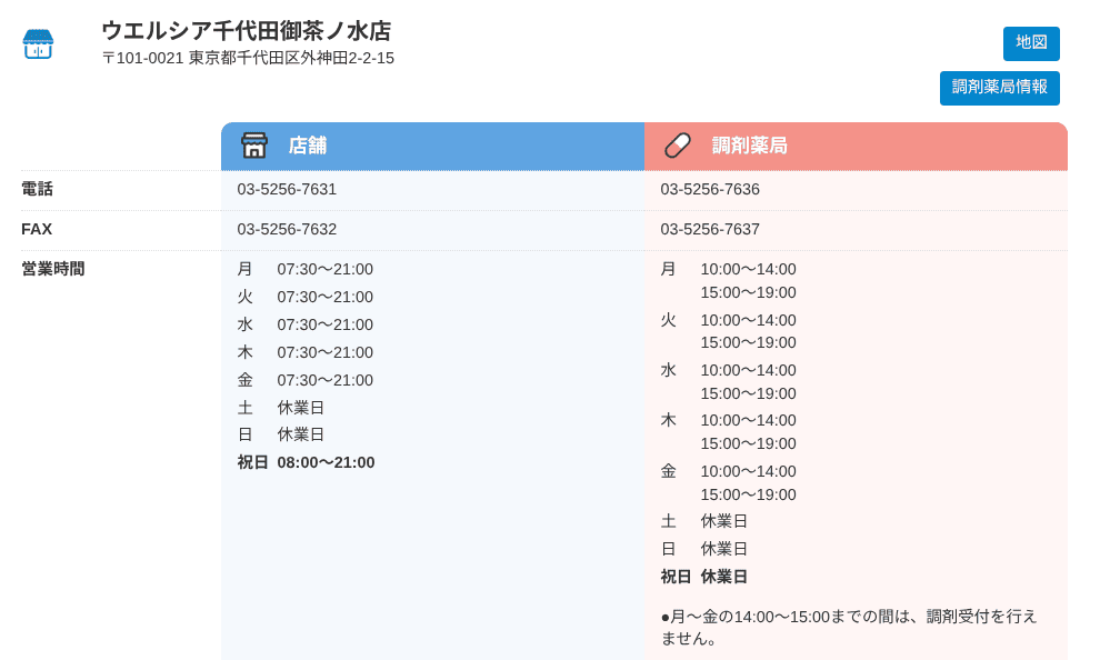• 都心の店舗で医薬品の品揃えが多いコンビニ
