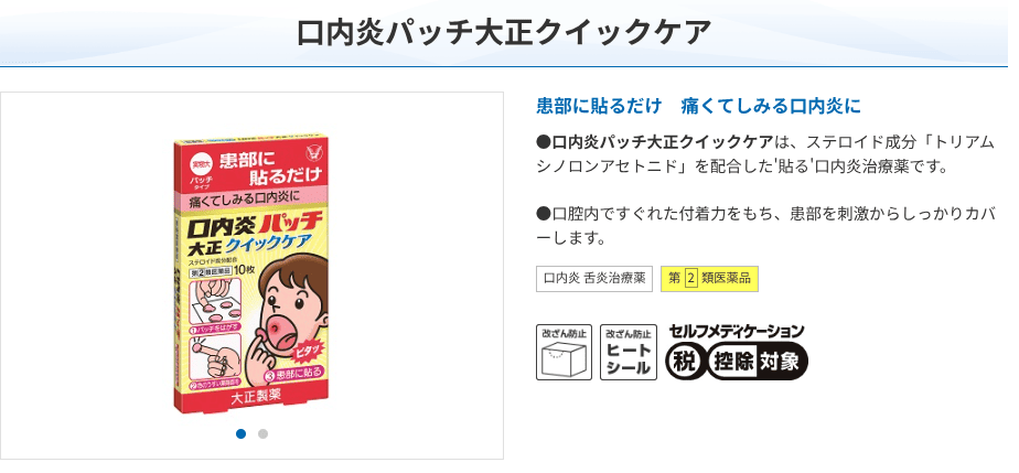 第2類商品でおすすめの商品は口内炎パッチ大正クイックケアです。