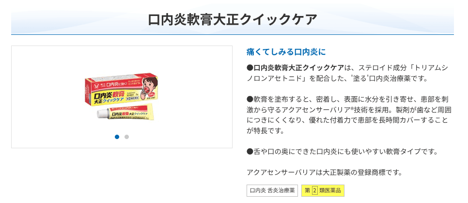そのため置かれている場所は多くの場合、口内炎・口腔トラブルの医薬品コーナーに存在。